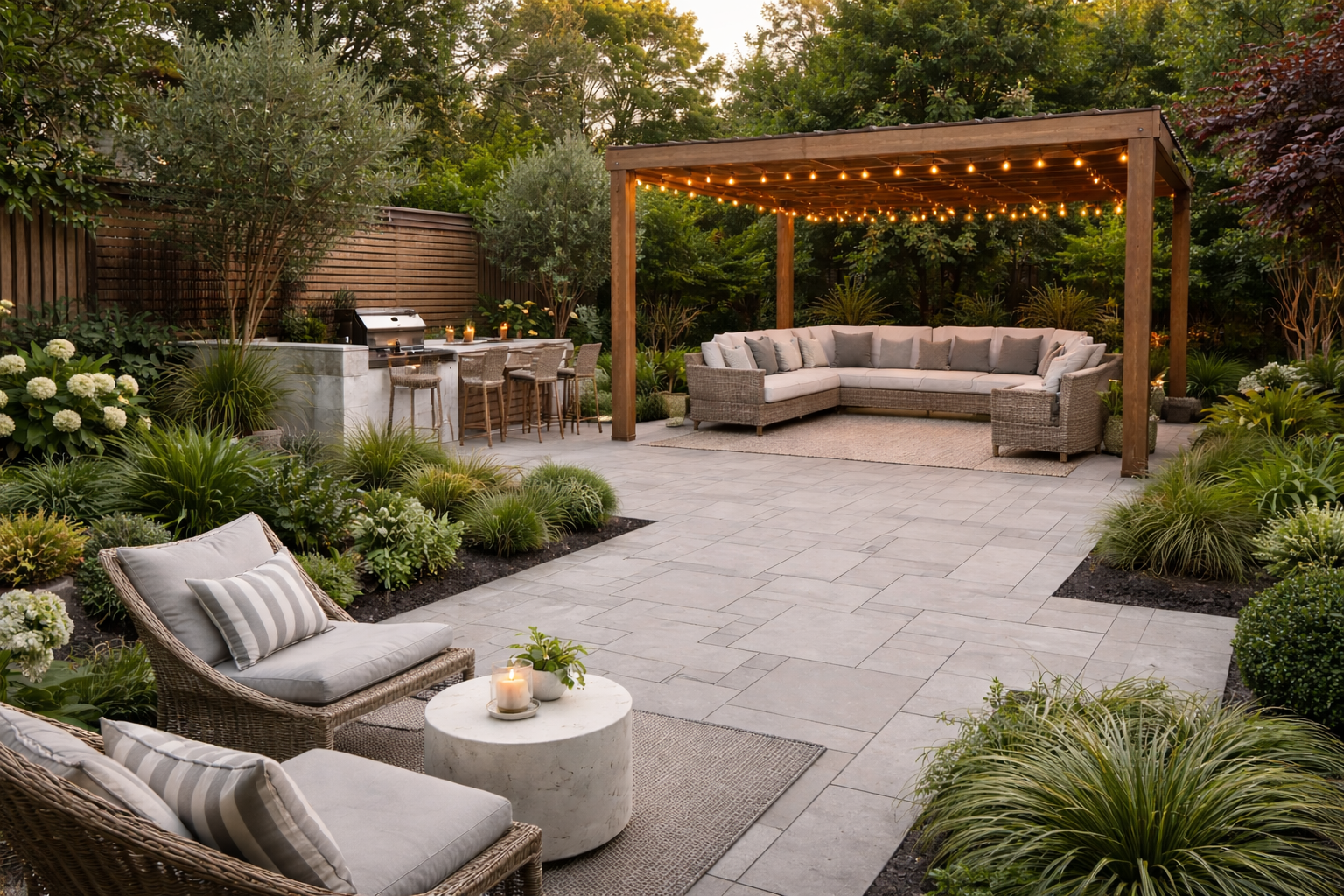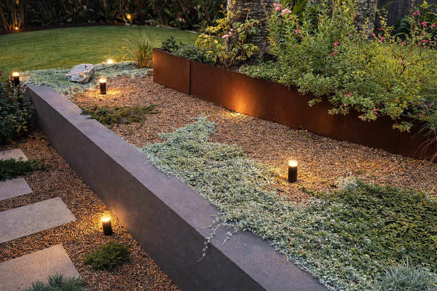 Stoic stripped everything back and designed the entire layout from scratch, introducing thoughtful zones, soft landscaping and unique features like the mounded grass areas that have become a favourite place to relax. The attention to detail, quality of workmanship and overall vision exceeded our expectations.
